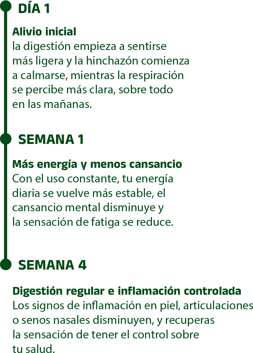 La mayoría de los clientes reporta mejoras notables entre los 7 y 14 días de uso.